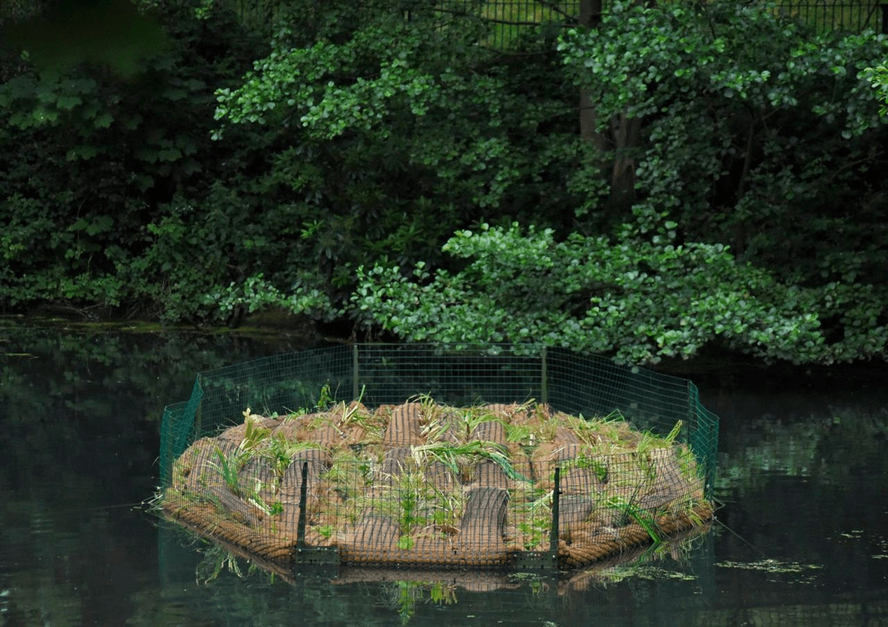 Floating green complexes consist of various platforms and barges filled with nutrient-rich soil where living plants are grown. These islands are visually appealing, reduce air pollution, and improve water quality. Furthermore, they serve as habitats for insects, birds, and various aquatic organisms within the urban environment.